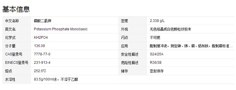 | 別名/英文名: | Potassium Phosphate Monobasic |