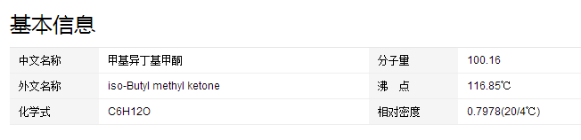甲基異丁基甲酮,又名4-甲基-2-戊酮。是一種無色透明液體,能與醇、苯、乙醚等多數(shù)有機溶劑混溶,微溶于水,有芳香酮氣味。是一種優(yōu)良的中沸點溶劑及分離劑?! ?br />