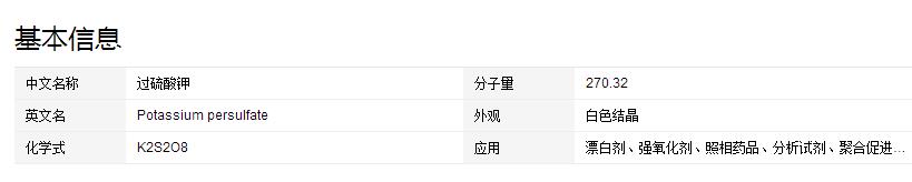 | 別名/英文名: | Potassium persulfate |