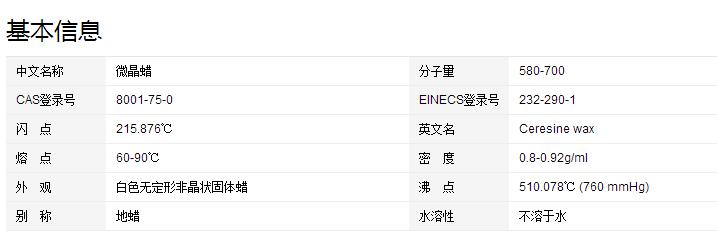 | 化學(xué)性質(zhì): | 白色無定形非晶狀固體蠟 |